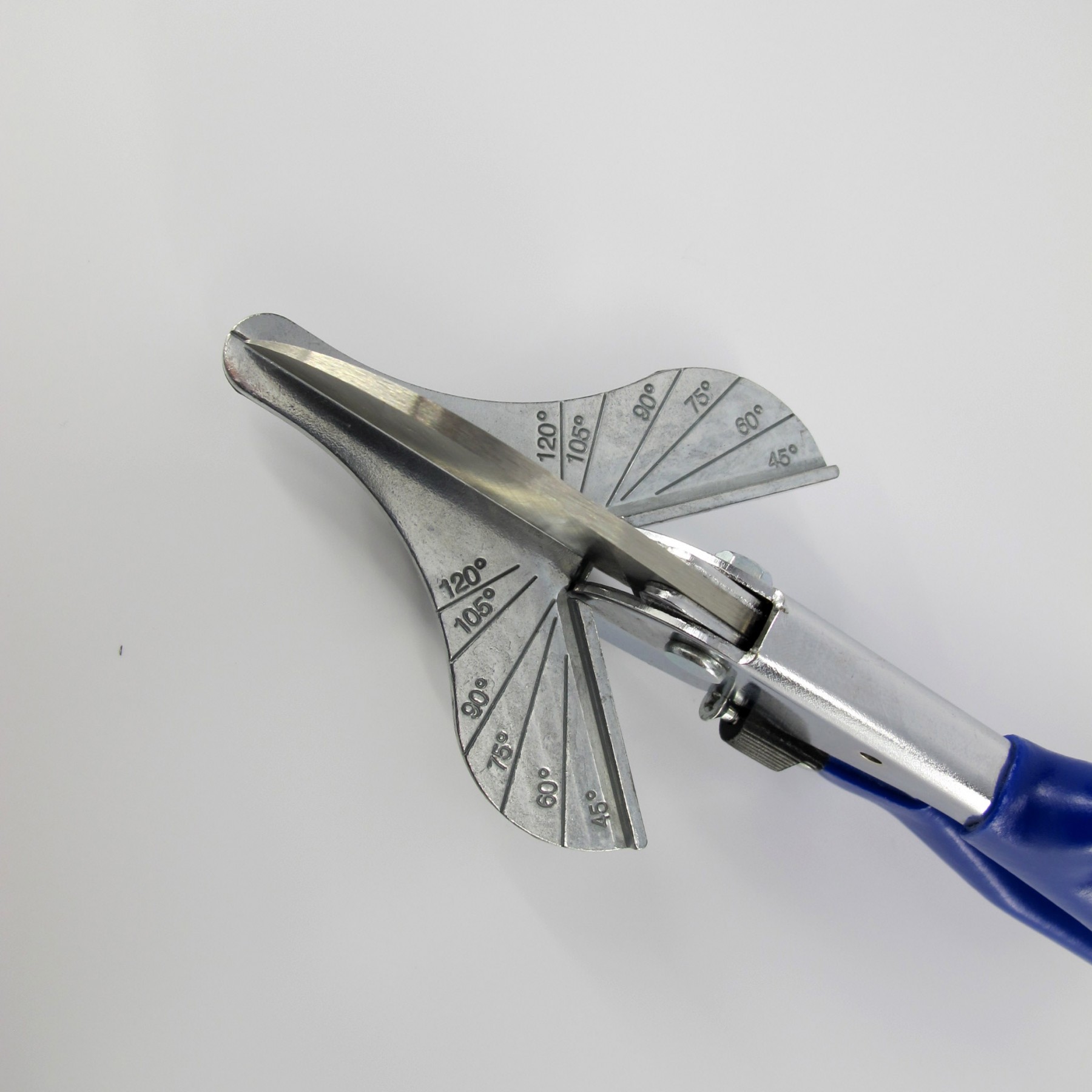 Specjalistyczne stalowe nożyce wysokiej jakości, do precyzyjnego cięcia prostego i pod kątem materiałów z tworzyw sztucznych , drewna , gumy i innych. Znajdują zastosowanie szczególnie przy cięciu profili wykończeniowych , okiennych, budowlanych , uszczelek i węży ogrodowych. Specjalna płaska grawerowana podstawa ma oznaczone podstawowe katy cięcia 45, 60, 75, 90, 105 i 120 stopni. Dla wygody i bezpieczeństwa rękojeść pokryta przyjemnym w dotyku tworzywem.