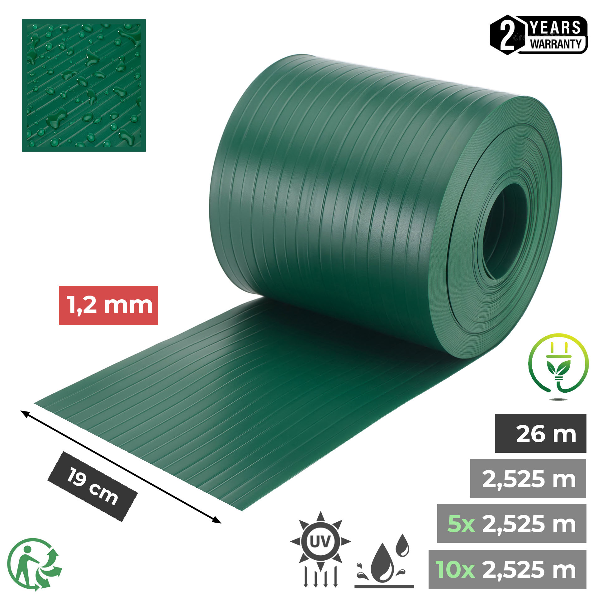 - 200-02: bandă pentru gard cu lățimea de 19 cm, disponibilă în bucăți gata făcute (2,525 m – standardul panoului) sau în rolă (26 m) – ideală pentru amenajarea gardurilor, adăposturi de garaj, balcoane, adăposturi pentru biciclete